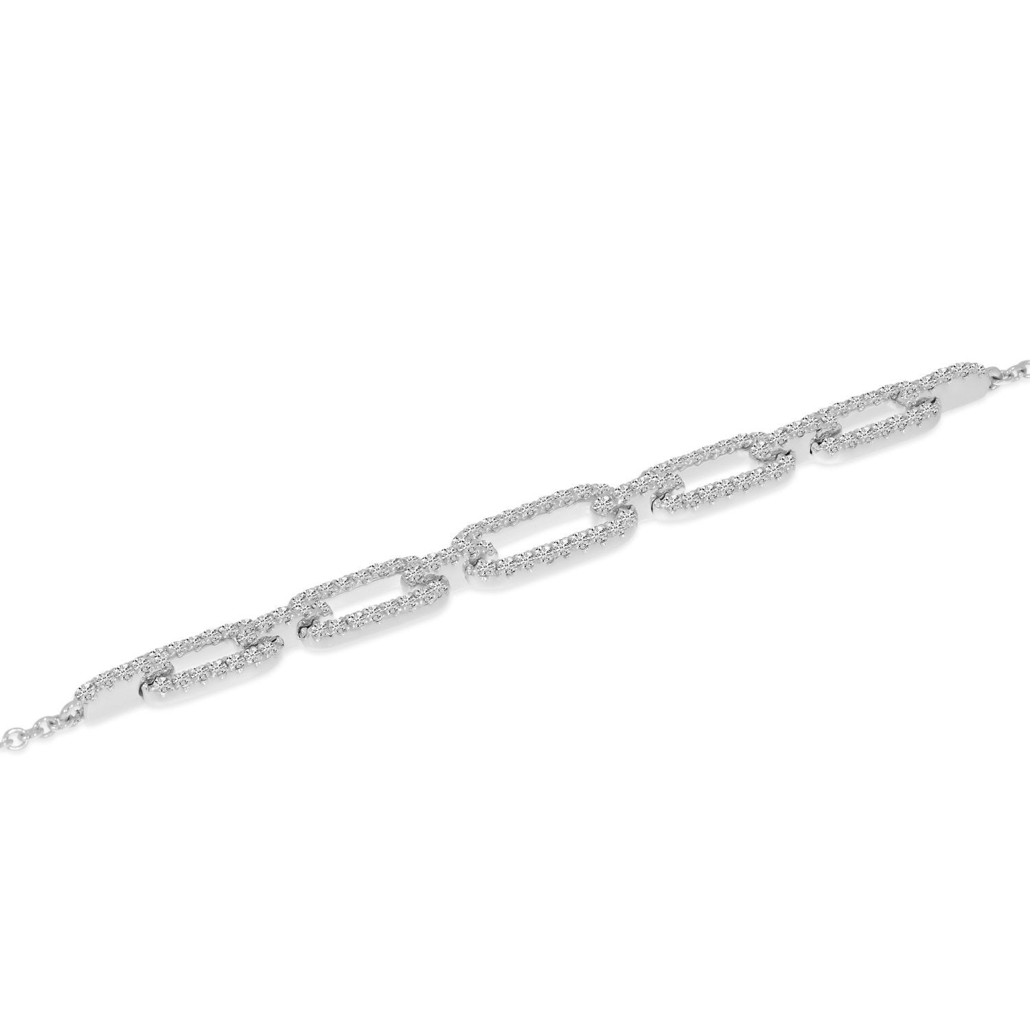 14K White Gold Diamond Open Link Chain Bracelet