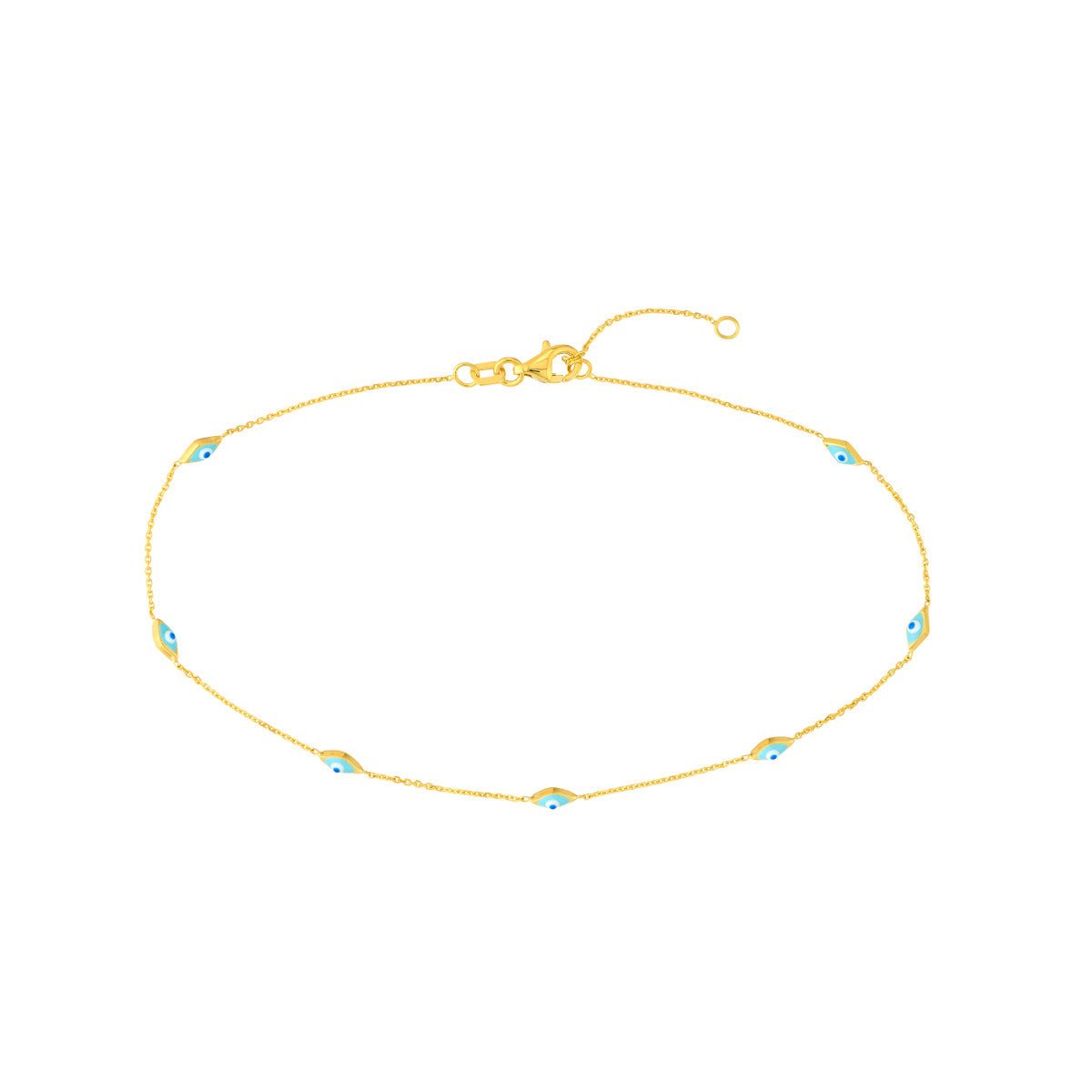 14K Yellow Gold Enamel Evil Eye Station Chain Anklet