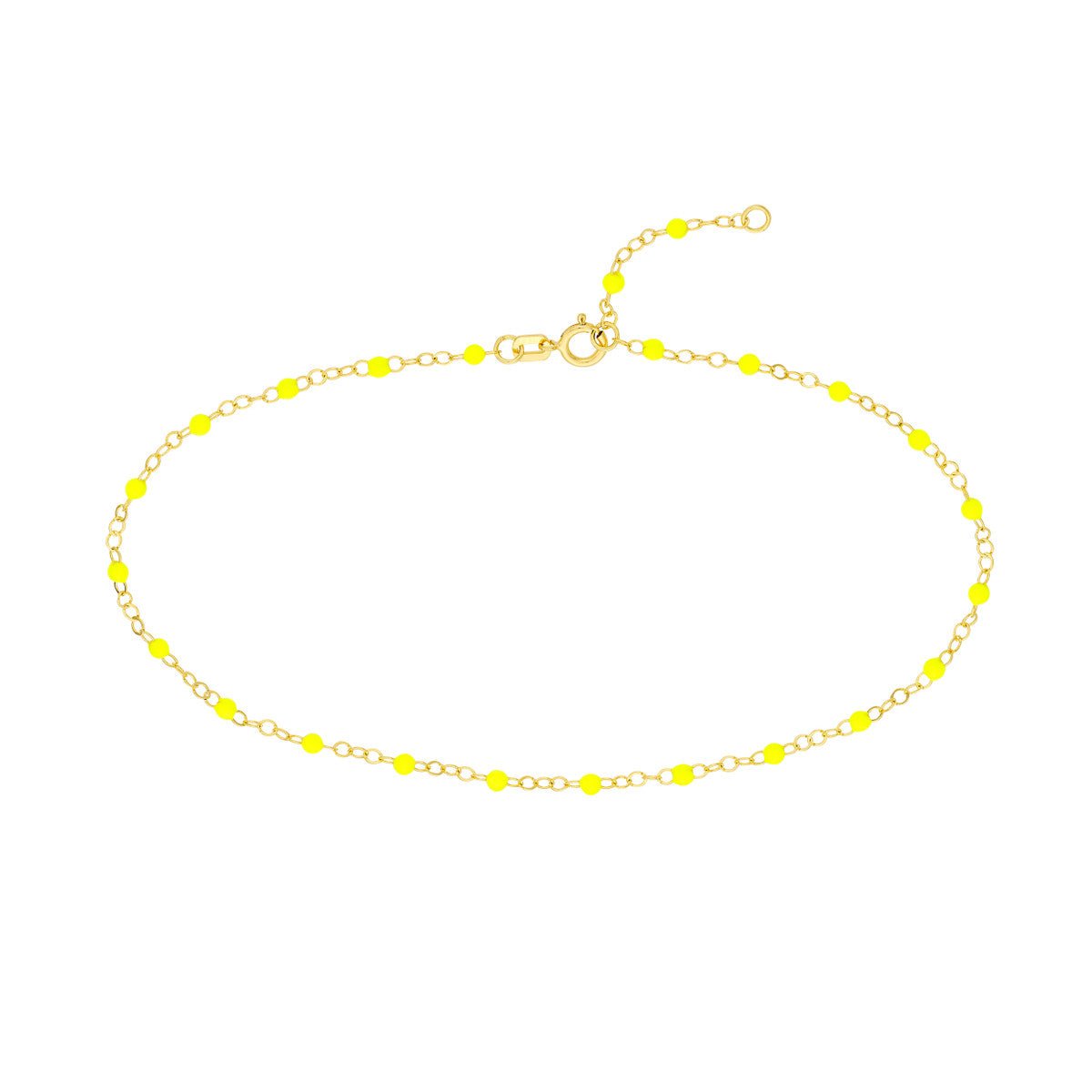 14K Yellow Gold Neon Yellow Enamel Bead Piatto Chain Anklet
