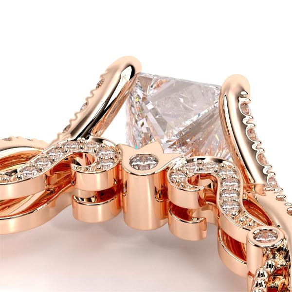 INSIGNIA-7060 Princess engagement ring, featuring round brilliant-cut pave set diamonds on a twisted band. Distinctively paired with Verragio's handcrafted signature beading and crest.