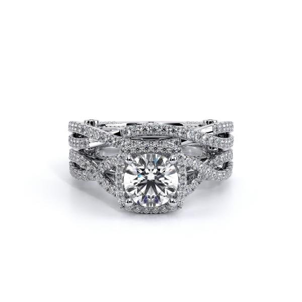 INSIGNIA-7070CU Cushion halo engagement ring. Featuring, timeless pave' set round brilliant-cut diamonds on a twisted shank accompanied by Verragio's signature beading and crest.