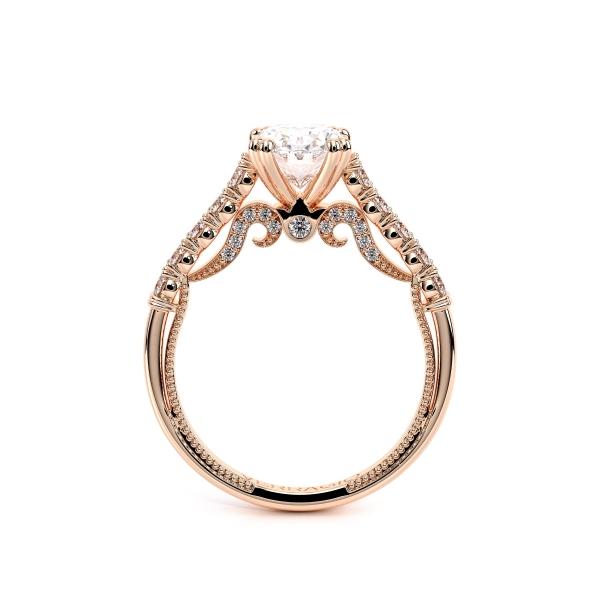 INSIGNIA-7097OV Classic engagement ring features a shared-prong set band with round brilliant-cut diamonds. Meticulously set and handcrafted is Insignia's scrollwork which seamlessly flows into Verragio's signature beading and crest.