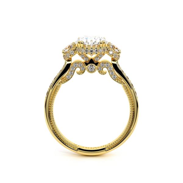INSIGNIA-7103OV features our illustrious stardust halo to elegantly highlight your oval center stone and two round brilliant-cut side diamonds. This ring is elevated by a channel set diamond band. Insignia's distinctive diamond scrollwork and Verragio's timeless signature beading completes a look unlike any other.