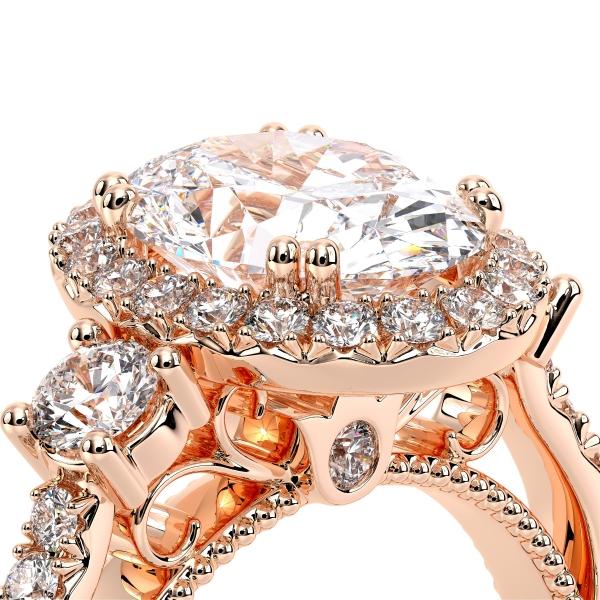 PARISIAN-122OV is designed with all of our unique details in mind. This style has a wonderful pave-set Oval diamond halo that is highlighted by its brilliant side diamonds. Our Parisian Lace and Fleur Di Lis rose gold wraps and signature Verragio beading accentuates the handcrafted vintage details perfectly.
