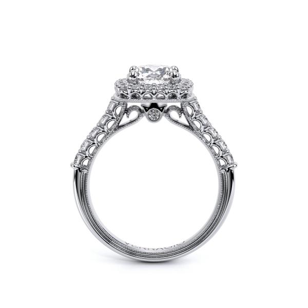 Renaissance-903CU engagement ring from the Renaissance Collection, elegantly enhances the round center by a halo of round brilliant-cut diamonds.